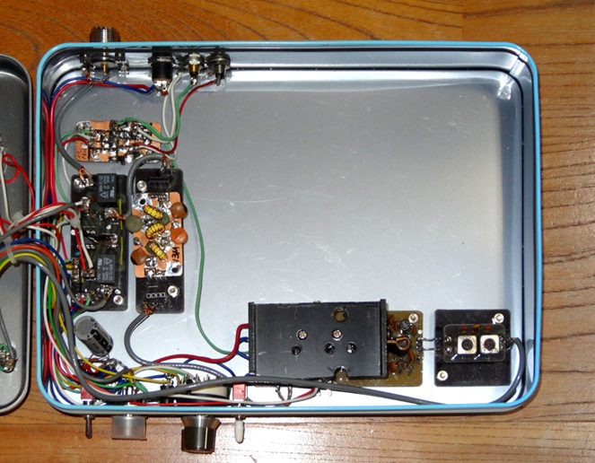 下の写真は、プラグイン方式に変えたアンプ部です。アンプ基板は、BPF部を切断しました。